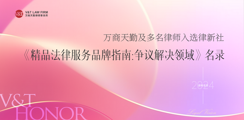 万商天勤及多名律师入选律新社《精品法律服务品牌指南(2024):争议解决领域》名录